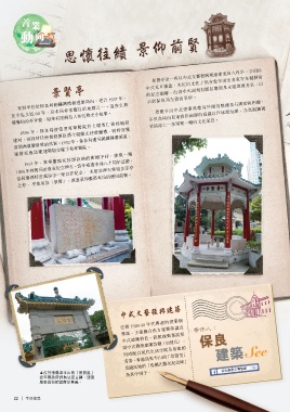 中的示不社式紀對景但區瓦景念保賢為添片賢楹亭良局上覆亭聯是局內一蓋,的一先抹兒,而中座賢別童朱涼以式的樹提紅亭中建景一供的內式築仰幟幽支則文與。的靜柱刻藝總文的上有復化局庭刻興歷氣外園有風屆息圍以當格總。的作年建理牌休書成及樓憩法的永及玩名八遠石樂角家總牆,亭岑理相亦。光芳映為亭樾名相銅頂撰,襯鑼以書以,灣 ▲位於港島東半山的「景賢里」 近年獲政府評為法定古蹟,建築 風格具有相當歷史意義。 22 | 今日保良